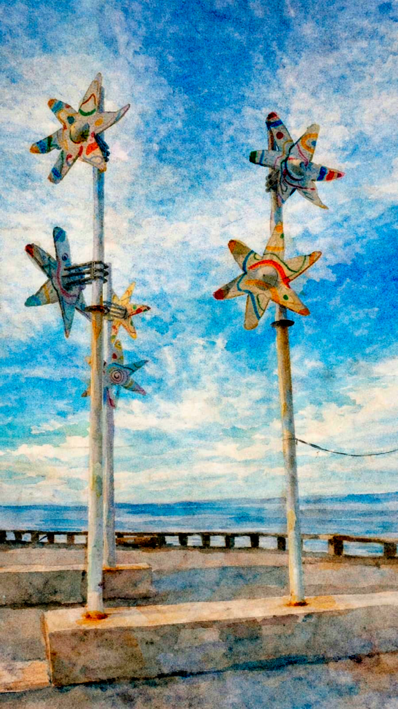 Los molinos de colores que giran sobre el Paseo Dávila —esos que conectan Punta Iglesia con La Perla— llegaron en diciembre de 2010, pintados con los colores de las banderas iberoamericanas para la Cumbre de Jefes de Estado que se hizo acá en Mar del Plata. Más de veinte aspas girando al viento del Atlántico. Una postal que hoy ya forma parte del paisaje cotidiano, casi sin que lo notemos.